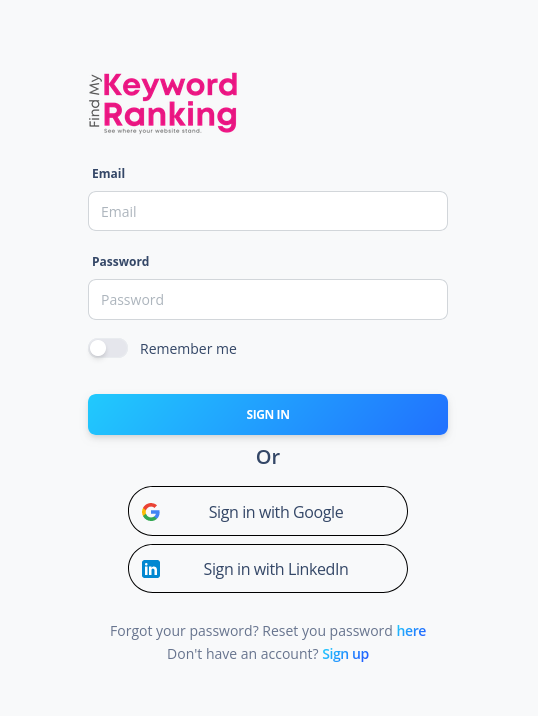 - Register and Log In: Sign up and log in to Findmykeywordranking.com using the provided invitation URL.